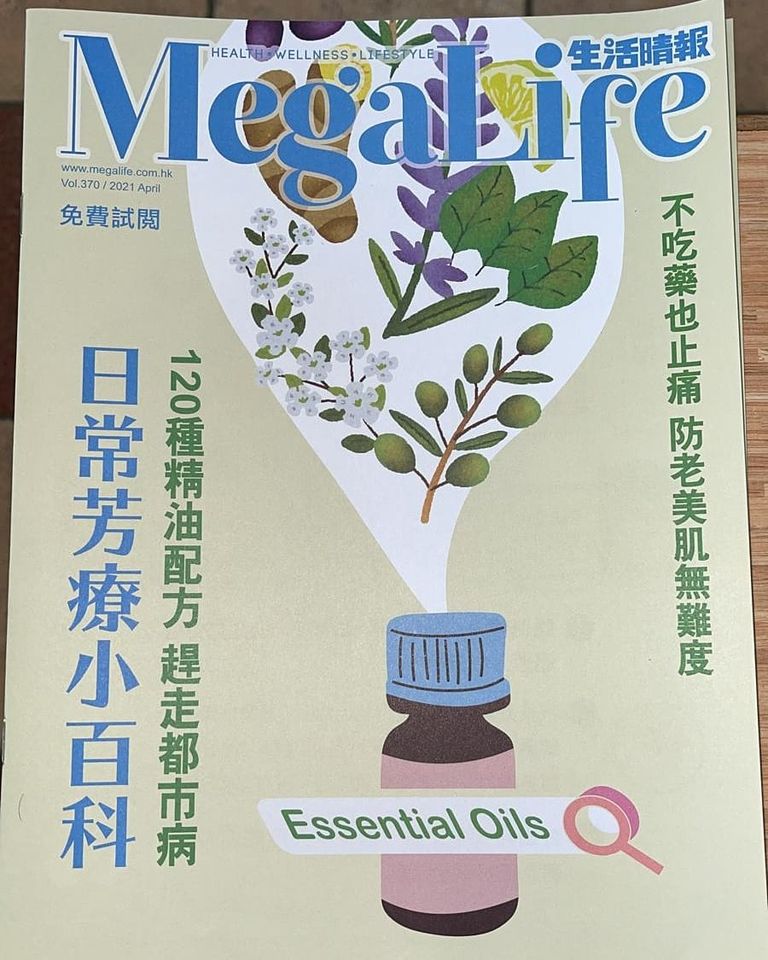 最近朋友送上一本由醫院🏥處拿取的雜誌📔給我 – MegaLife,這是一本關於生活、健康及養生的免費雜誌📗。我被今期雜誌封面上的一句「不吃藥也止痛,防老美肌無難度」❌💊深深吸引著….答案💡就是我們都喜愛的….精油💡裏頭還有1️⃣2️⃣0️⃣款精油配方建議,據說能應付一些都市病🦠等等…