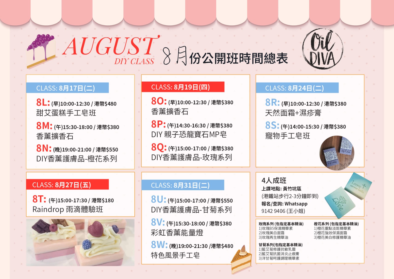 8月份節目非常豐富!請參看以下的DIY工作坊時間表: