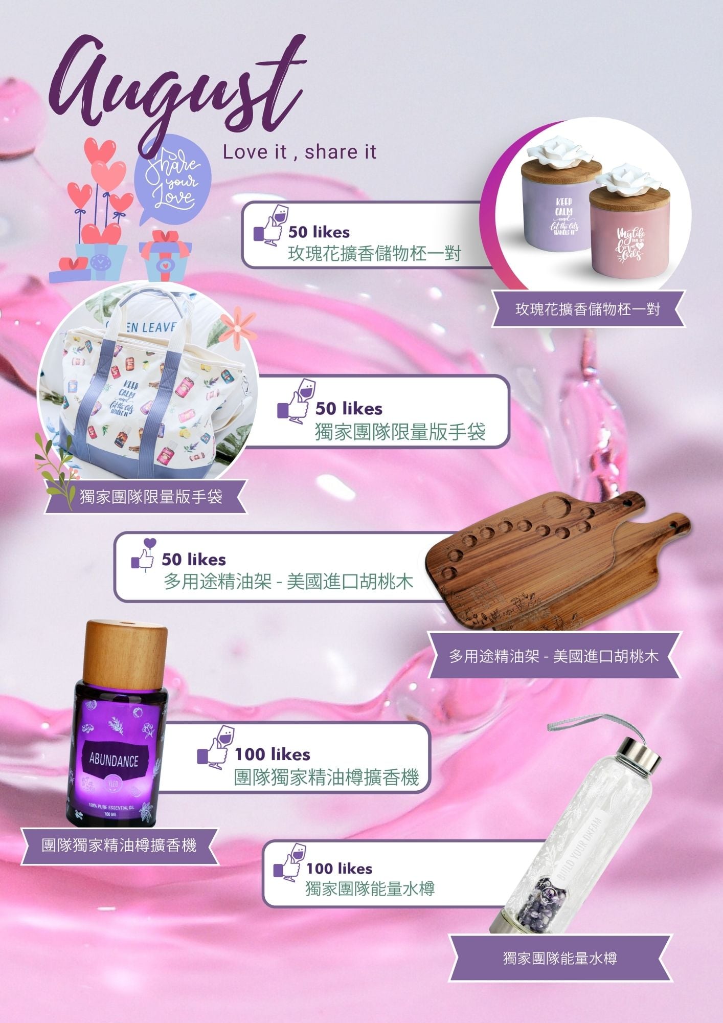 *分享內容只限於產品的個人分享,有關團隊禮物的分享一概不能獲得奬品
